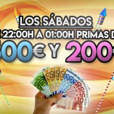 Todos los días, a las 13h. hay una prima de 300 euros. Además los jueves a las 20h. prima progresiva de 1.000 euros y los sábados desde las 22h. a 01h. primas de 500 euros y 200 euros. ¡¡Batería de primas explosivas!!